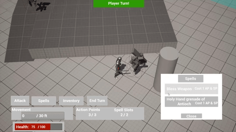 Designed and created the systems in the game like the turn-based combat system, how to activate encounters, how to create new encounters with existing enemies anywhere in the game, and the player interacting with abilities and inventory.